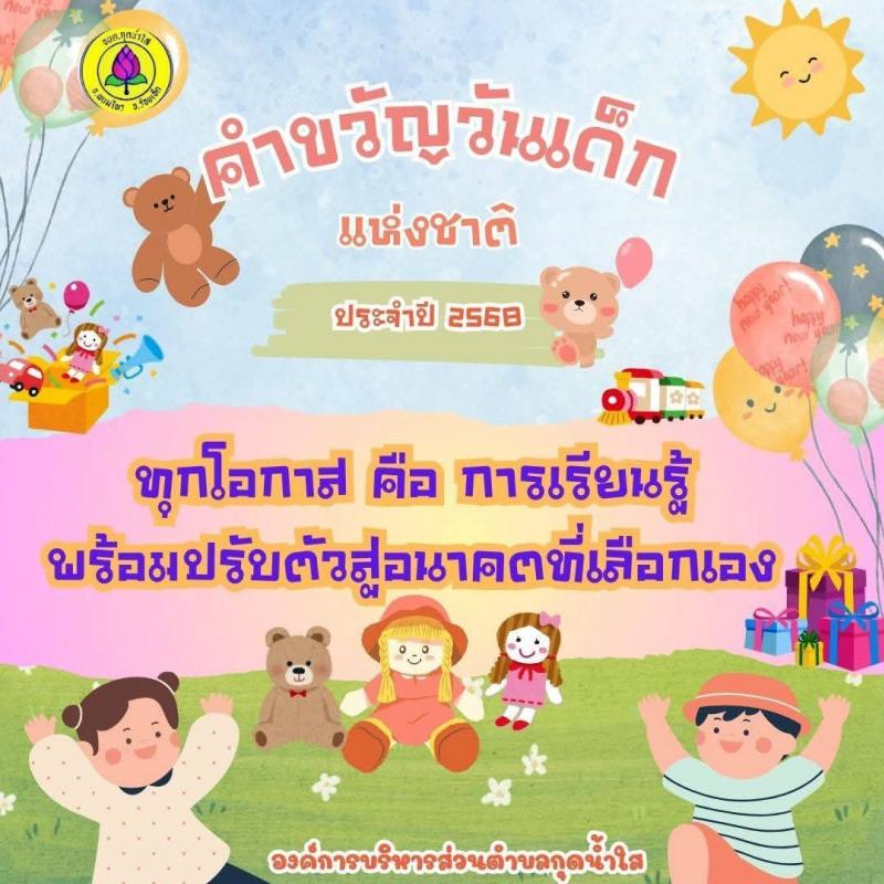...วันเสาร์ที่ 11 มกราคม 2568 วันเด็กแห่งชาติ นำโดยนายสุรชัย กระเดา นายกองค์การบริหารส่วนตำบลกุดน้ำใสเป็นประธานในพิธีเปิดงานกิจกรรมวันเด็กแห่งชาติ ประจำปี พ.ศ. 2568 ร่วมกับคณะผู้ลริหาร ข้าราชการ พนักงานองค์การบริหารส่วนตำบลกุดน้ำใส, สมาชิกสภาฯ, ฝ่ายปกครอง,ผู้นำชุมชน,ผู้อำนวยการโรงเรียนในพื้นที่ตำบลกุดน้ำใส,ผู้ปกครอง ประชาชนในพื้นที่กุดน้ำใส ดำเนินการจัดกิจกรรมวันเด็กแห่งชาติ เพื่อให้เด็กได้มีพื้นที่ในการแสดงความสามารถ ร่วมสนุกในการเล่นเกม และได้รับของรางวัลจากผู้ใหญ่ใจดีจำนวนมาก