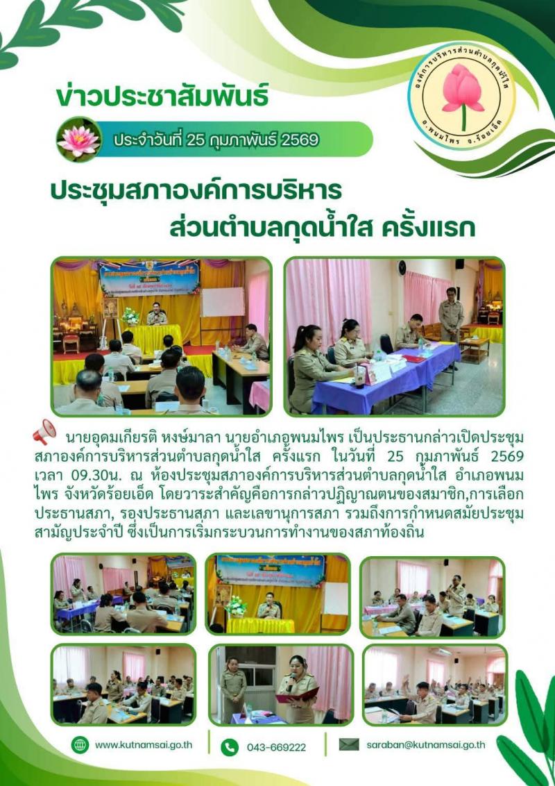 ประชุมสภาองค์การบริหารส่วนตำบลกุดน้ำใส ครั้งแรก
