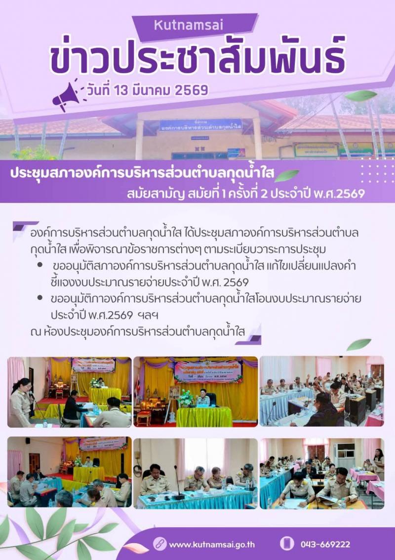 ประชุมสภาองค์การบริหารส่วนตำบลกุดน้ำใส สมัยสามัญ สมัยที่ 1 ครั้งที่ 2 ประจำปี 2569