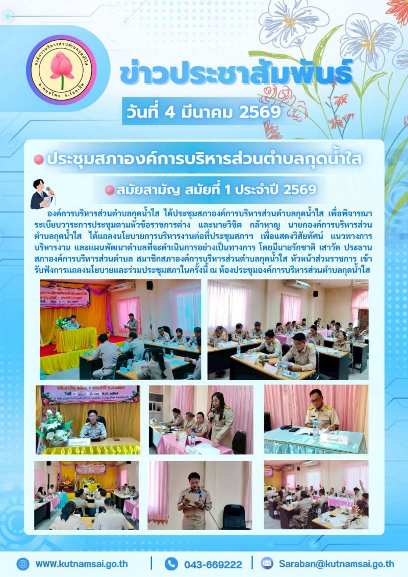 ประชุมสภาองค์การบริหารส่วนตำบลกุดน้ำใส สมัยสามัญ สมัยที่ 1 ประจำปี 2569