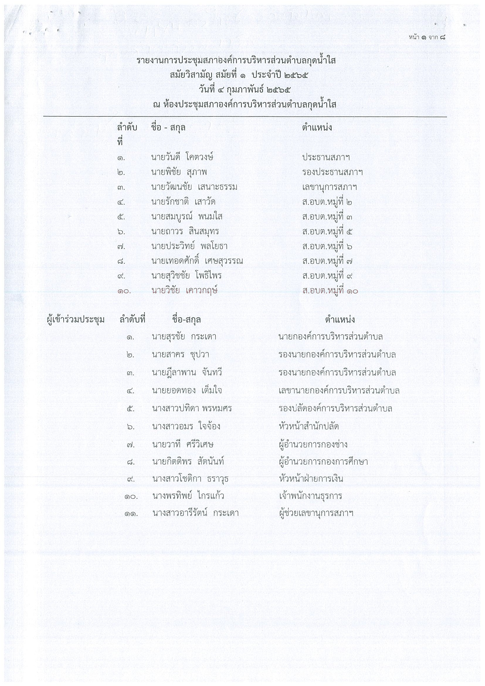 รายงานการประชุมสภา สมัยวิสามัญ สมัยที่ 1 ประจำปี 2565